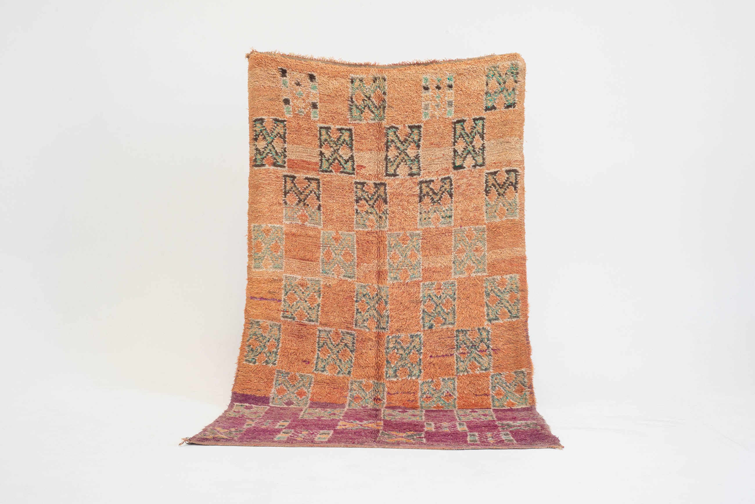Note: Da tæpperne er mellem 30-70 år gamle, skal du forvente at der er tegn på brug, som fx. slid, falmet farver osv. Dette er netop en del af deres charme og historie, som giver tæpperne den helt unikke karakter og sjæl.