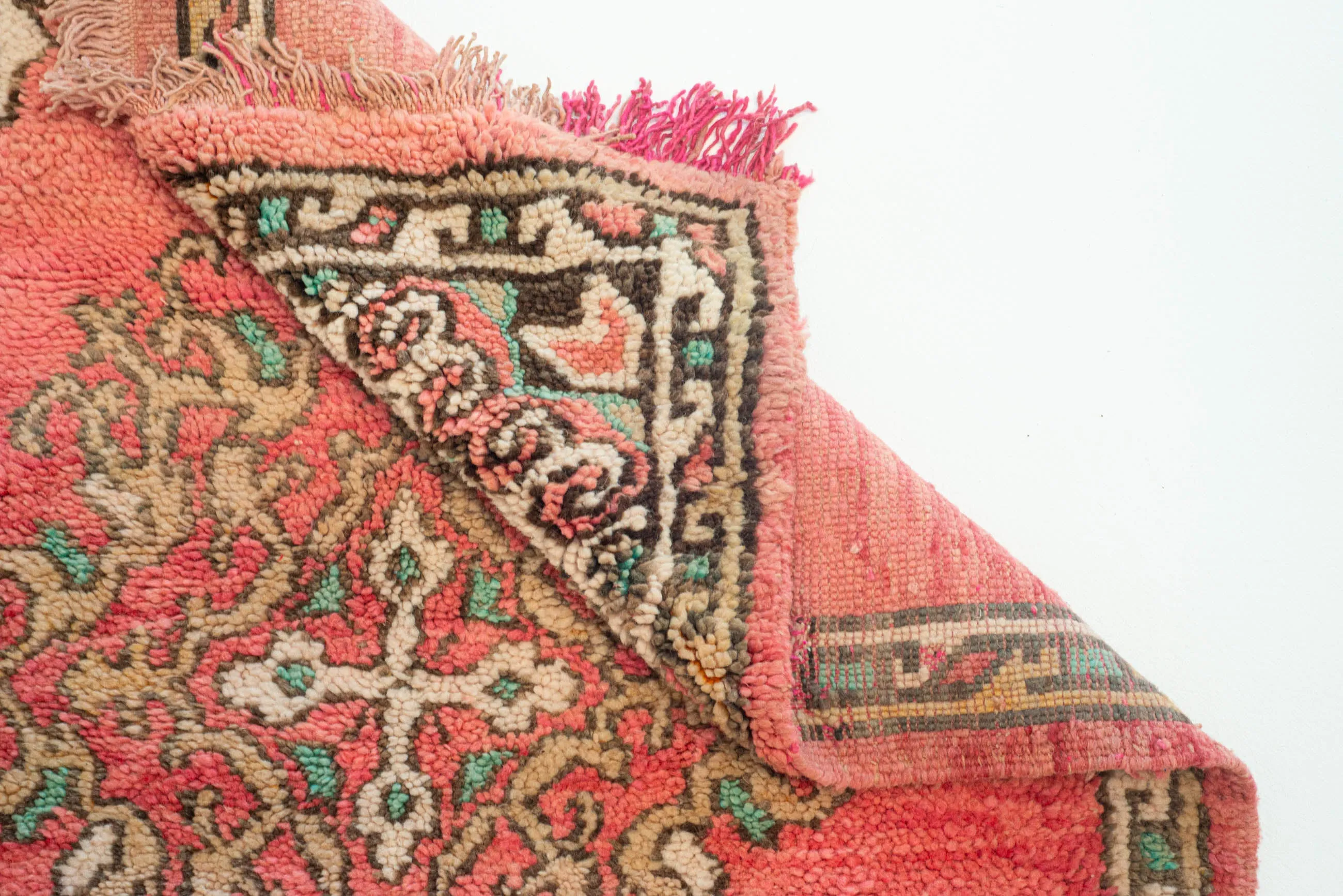 Note: Da tæpperne er mellem 30-70 år gamle, skal du forvente at der er tegn på brug, som fx. slid, falmet farver osv. Dette er netop en del af deres charme og historie, som giver tæpperne den helt unikke karakter og sjæl.