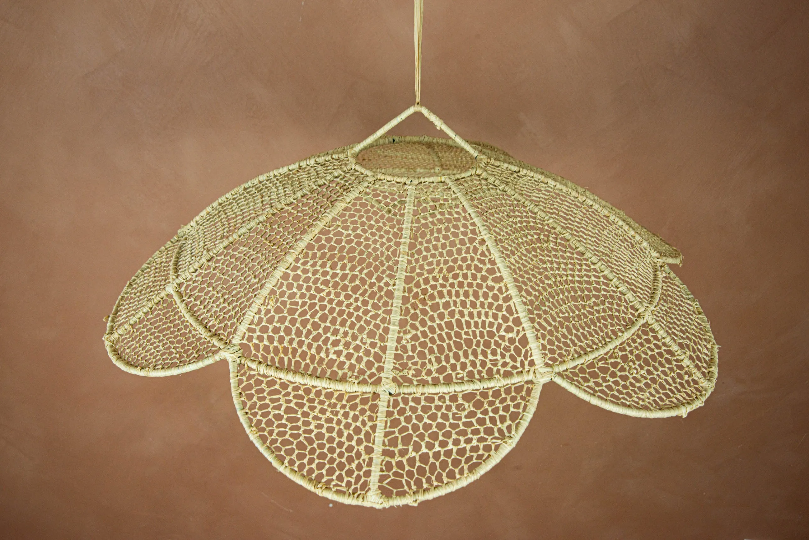 Marokkansk håndlavet lampe i raffia - blomst