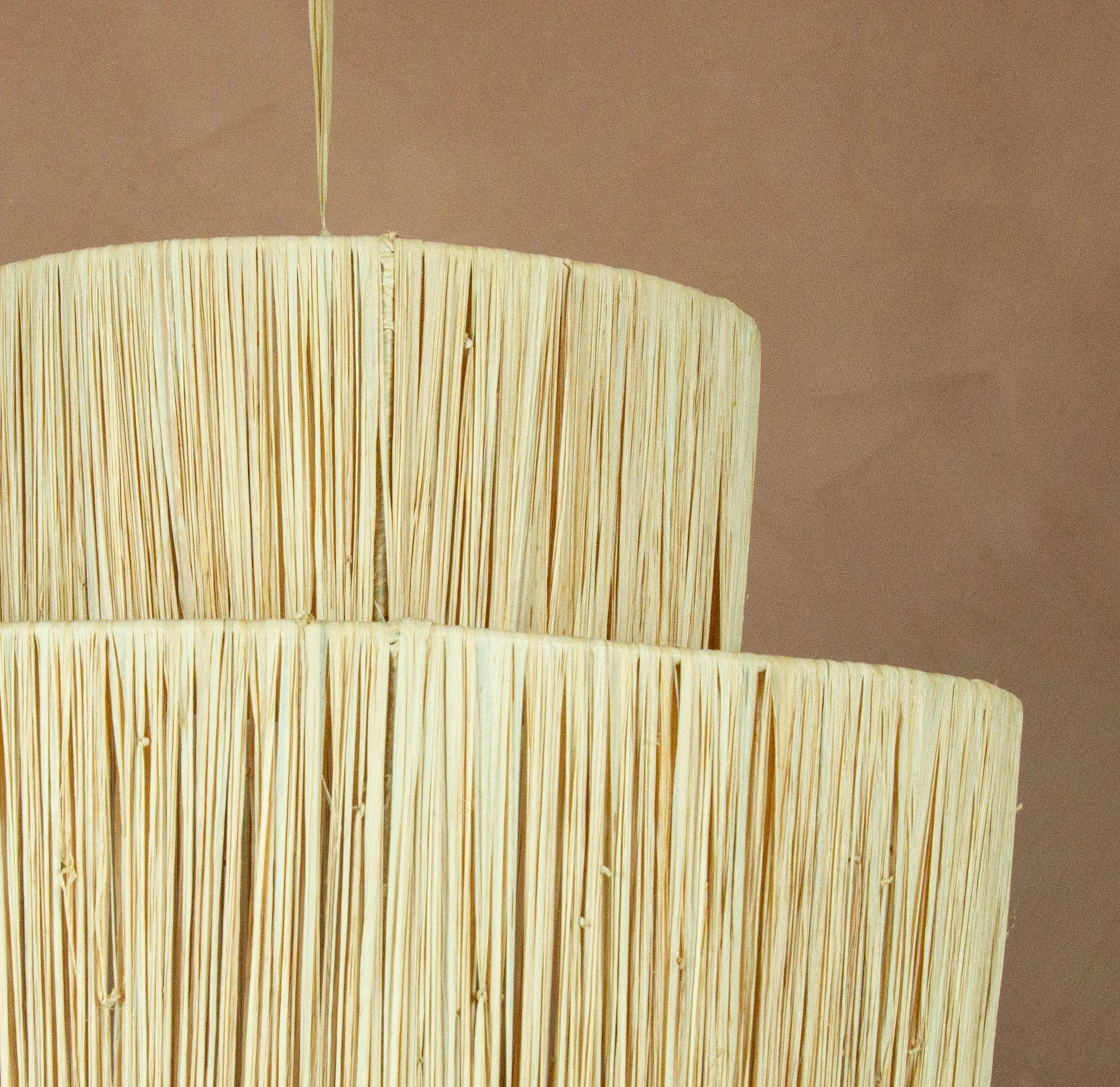 Note: Da alle vores produkter er håndlavet, vil der helt naturligt opstå forskelligheder og små skønhedsfejl. Da det er er helt naturlige materialer, kan farverne på raffiaen også varierer en smule. Dette er netop en del af deres charme og historie, som giver lampen den helt unikke karakter og sjæl.
