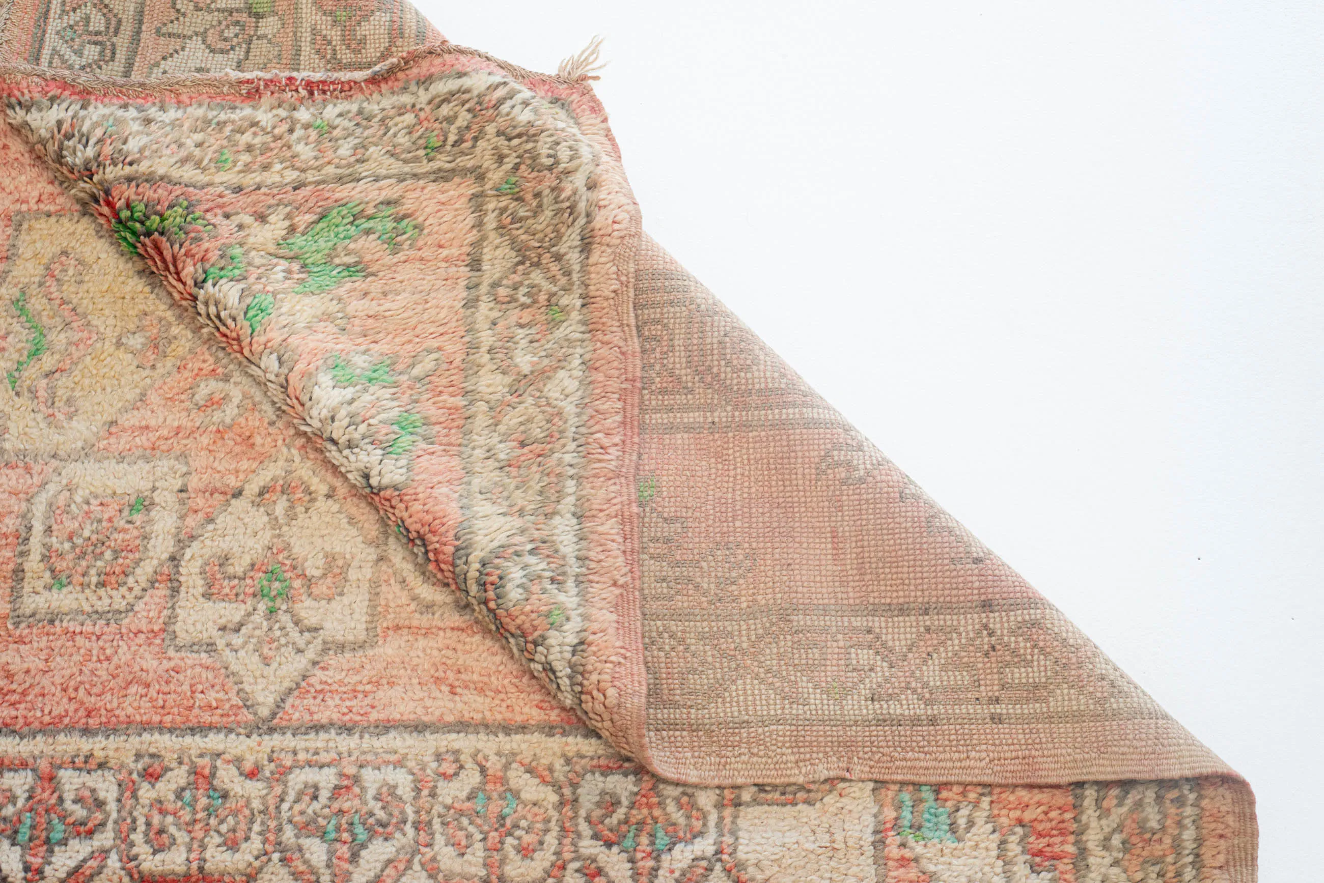 Vores vintage tæpper er typisk mellem 30-70 år gamle - nogle endda endnu ældre. Deres alder vidner om den enestående kvalitet og holdbarhed, som ægte marokkanske tæpper besidder.