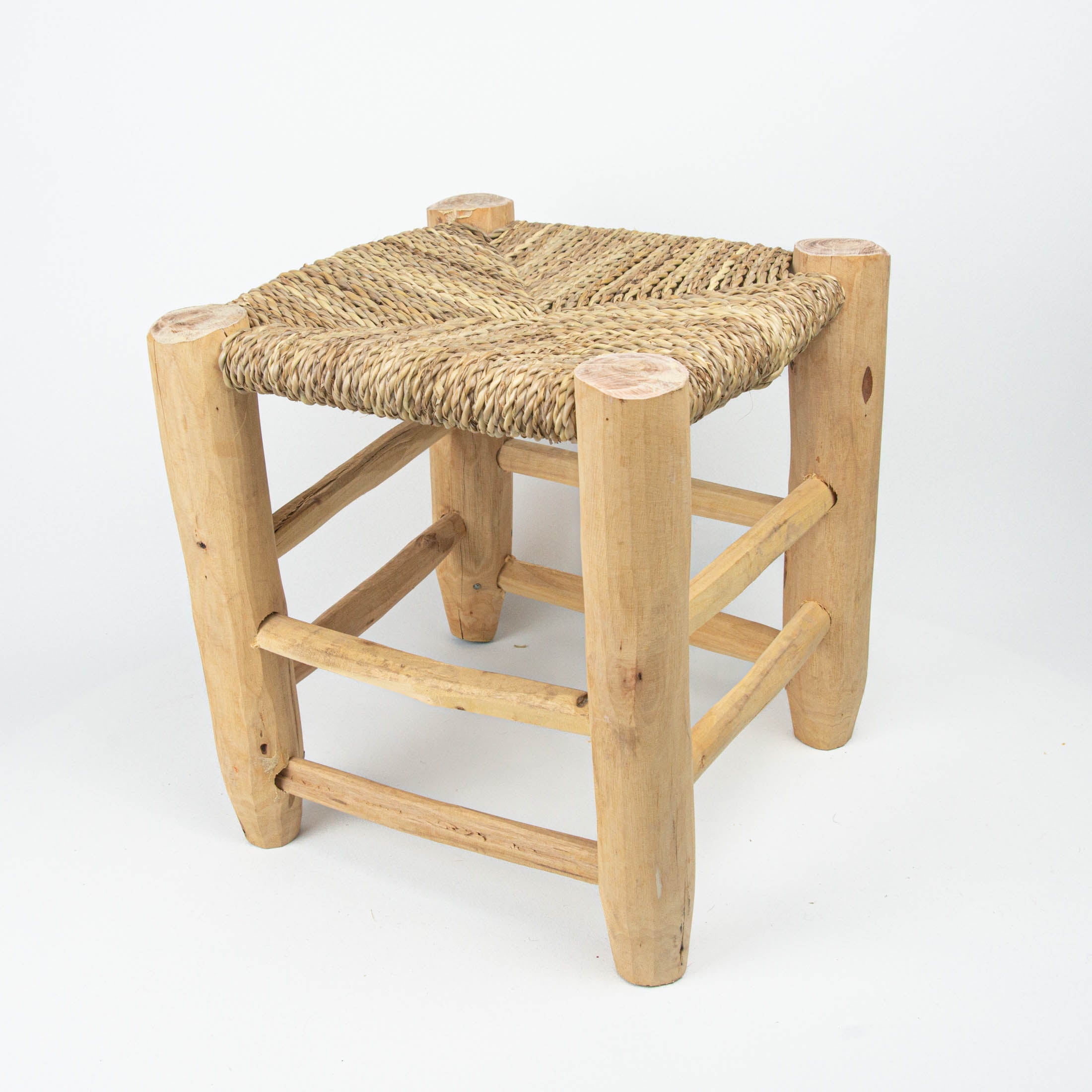 Træets naturlige patina og raffiaens varme tekstur skaber et rustikt og elegant udtryk. Vores skamler og bænke er alsidige og kan både bruges som praktiske siddepladser og som dekorative elementer i din indretning. Disse typer af skamler og bænke er blevet brugt i de marokkanske hjem i mange generationer.