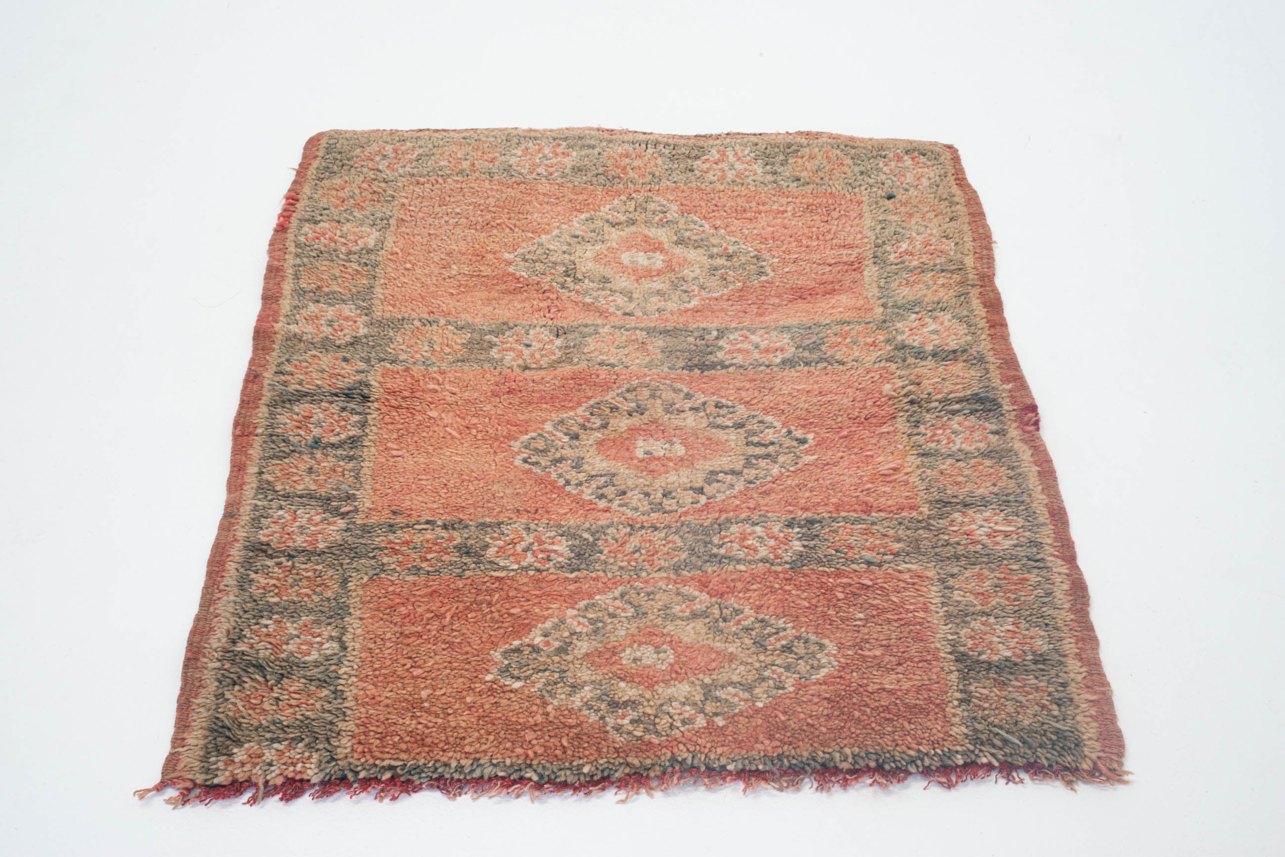 Note: Da tæpperne er mellem 30-70 år gamle, skal du forvente at der er tegn på brug, som fx. slid, falmet farver osv. Dette er netop en del af deres charme og historie, som giver tæpperne den helt unikke karakter og sjæl.